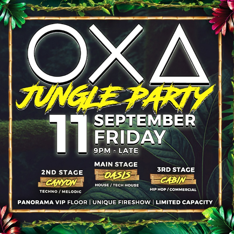 Come early, stay late, and make unforgettable memories at OXA. Dive into an evening where the rhythm of the jungle takes you through the night. See you under the stars! 🌴🌌