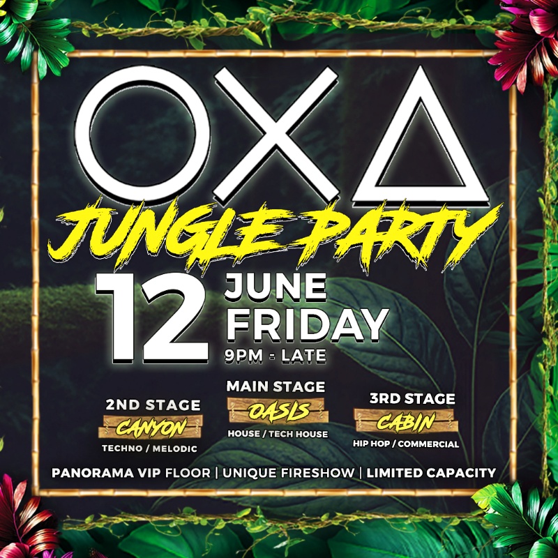 Come early, stay late, and make unforgettable memories at OXA. Dive into an evening where the rhythm of the jungle takes you through the night. See you under the stars! 🌴🌌