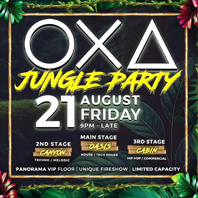 Come early, stay late, and make unforgettable memories at OXA. Dive into an evening where the rhythm of the jungle takes you through the night. See you under the stars! 🌴🌌