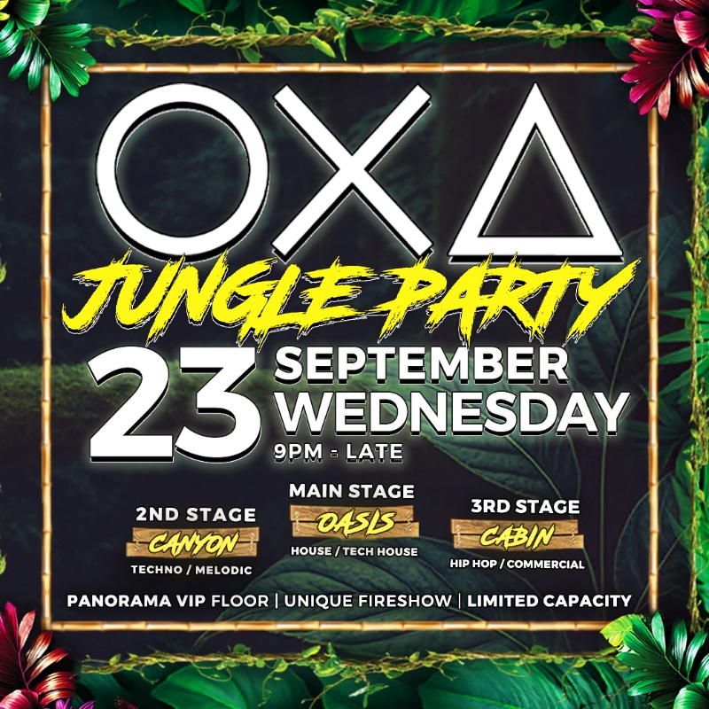 Come early, stay late, and make unforgettable memories at OXA. Dive into an evening where the rhythm of the jungle takes you through the night. See you under the stars! 🌴🌌