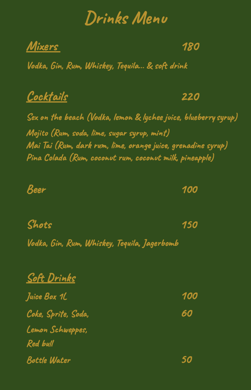 Drinks Menu details: