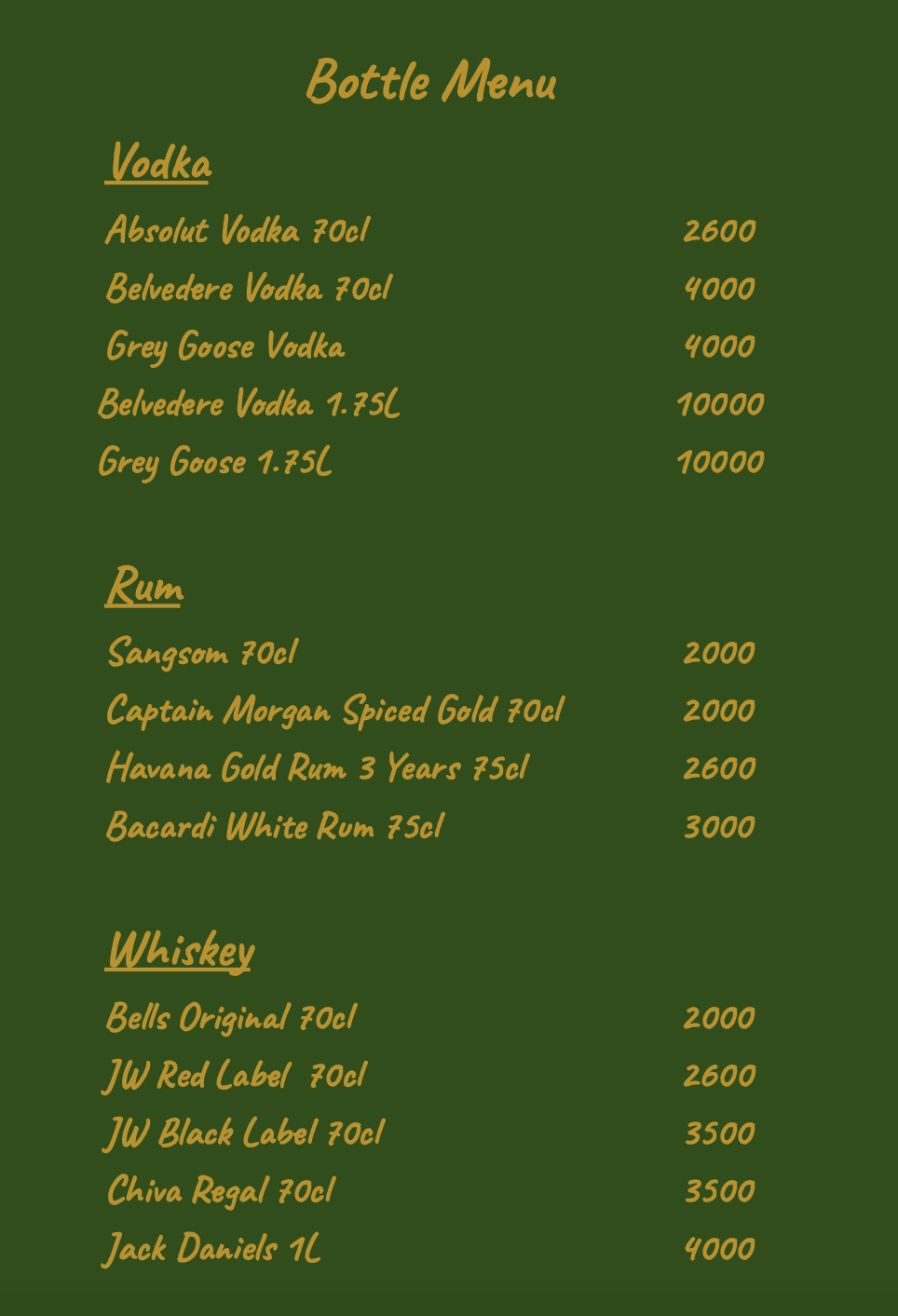 -> If you require any other bottle (premium alcohol) that is not mentioned please let us know <-