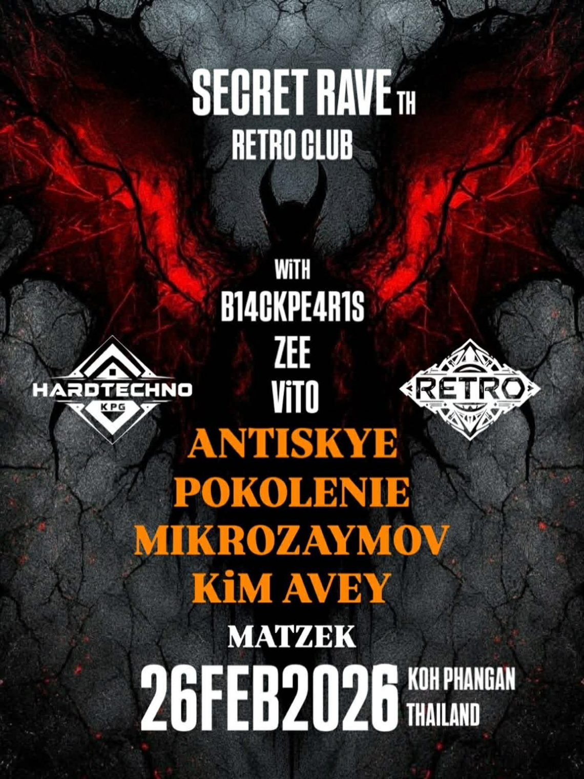 Hard techno descends on Phangan as Hardtechno KPG and Retro Club unite for a night of industrial intensity led by an international roster of relentless selectors.