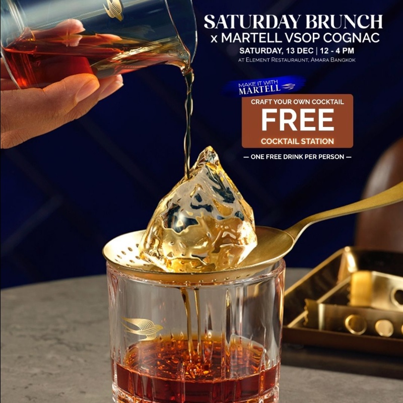 Join us for a fabulous Saturday Brunch at Element Restaurant, Amara Bangkok, featuring Martell VSOP Cognac collaboration, creative cocktails, and live DJ beats