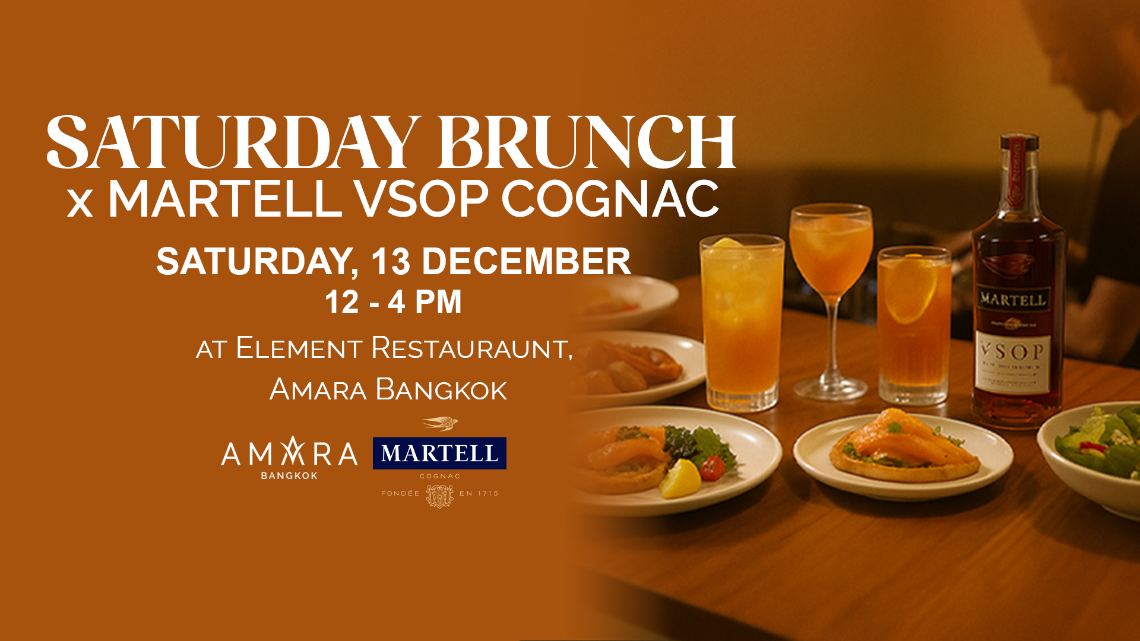 Join us for a fabulous Saturday Brunch at Element Restaurant, Amara Bangkok, featuring Martell VSOP Cognac collaboration, creative cocktails, and live DJ beats