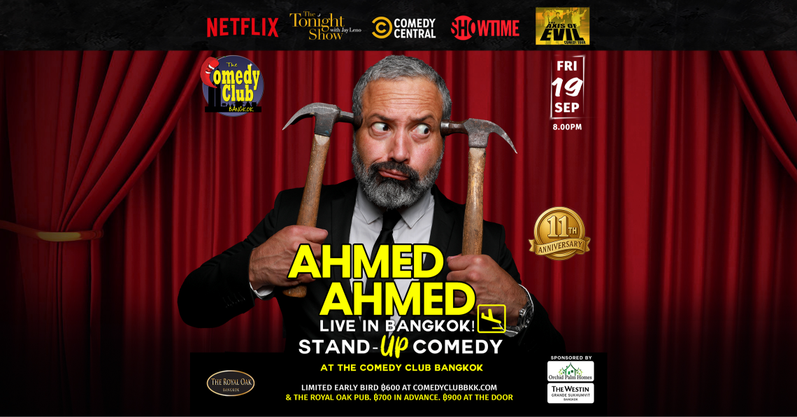 From L.A. to Bangkok, The Comedy Club Bangkok very proudly presents Egyptian-American comedian and actor AHMED AHMED for our 11THΒ YEAR ANNIVERSARY SHOW!