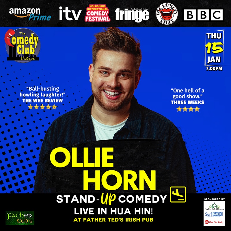 From the UK to Hua Hin, The Comedy Club Bangkok proudly presents Stand-Up Comedy with the brilliant comic (British Comedy Guide Top Pick) OLLIE HORN!