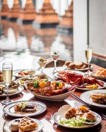 Enjoy for Sunday Brunch experience. Savor seafood paradise with items such as Lobster, King Crab, Oysters, and mouthwatering grills as well as diverse culinary stations including Japanese, Italian, Indian, Thai and more. Don't forget to save some rooms for International & Thai desserts + Cheese galore!