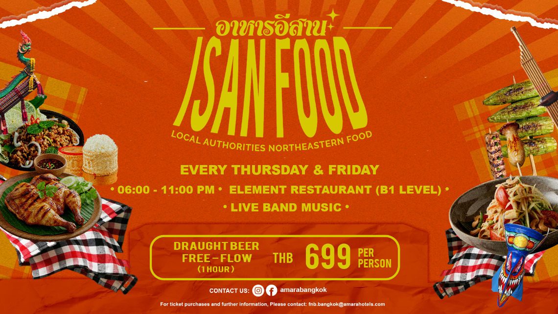 Unwind after work with our golden hour experience, where refreshing draught pours meet the rich heritage of Thailand’s Northeast. Immerse yourself in a relaxed yet vibrant atmosphere, complemented by live music and soulful vibes—perfect for an easy evening with friends or colleagues.