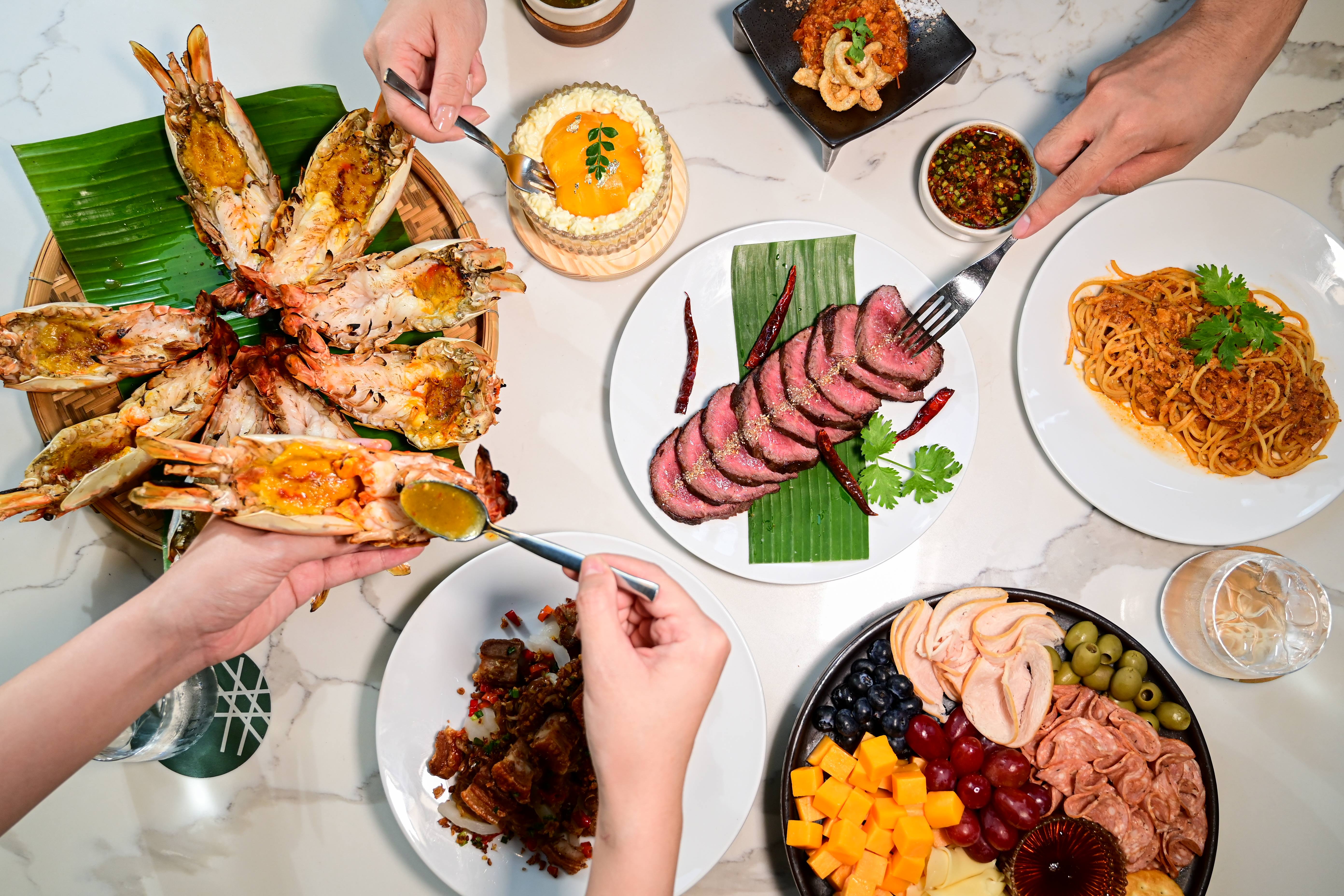 Indulge in a premium go‑local Thai brunch featuring Unlimited Freshly Made Dishes, a jumbo grilled river prawn, and free‑flow 20+ alcoholic and non‑alcoholic drinks, including signature cocktails and matcha curated by EKKALUCK BAR X AVANTCHA, plus charcuteries and baked Thai herbal seabass from the buffet line.