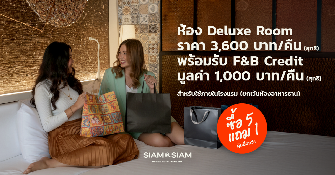 - Deluxe Room เพียง 3,600 บาทสุทธิต่อคืน พร้อม F&B Credit มูลค่า THB 1,000 (ยกเว้นห้องอาหารธาน)