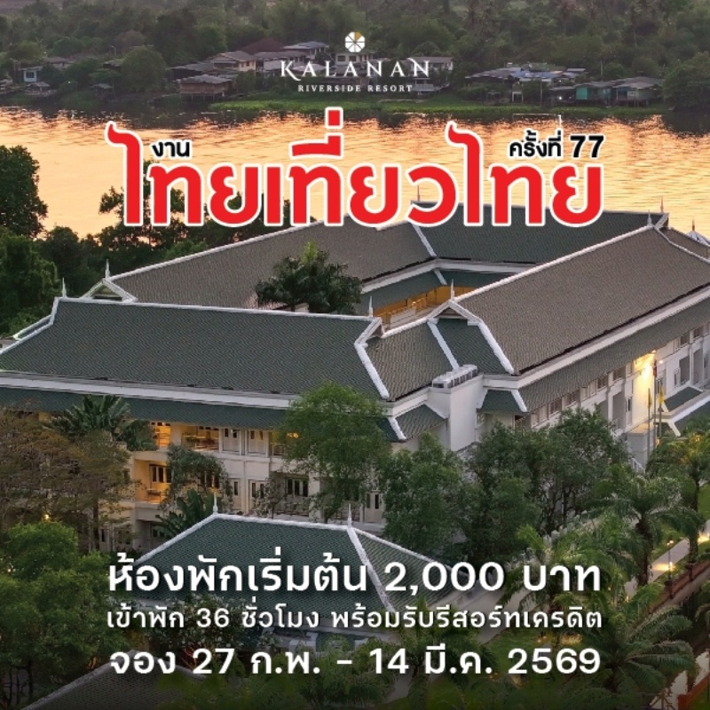พบข้อเสนอสุดพิเศษ ไทยเที่ยวไทยครั้งที่ 77 พักผ่อนหย่อนใจในรีสอร์ทริมแม่น้ำ เข้าพักได้ 36 ชั่วโมง พร้อมรับรีสอร์ทเครดิต เพลิดเพลินกับกิจกรรมทางน้ำและไลฟ์สไตล์ท่ามกลางธรรมชาติ ผ่อนคลายกับโปรโมชันสปา และอิ่มอร่อยบุฟเฟ่ต์ราคาพิเศษ