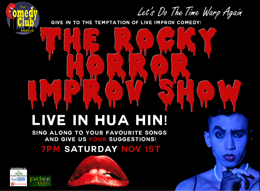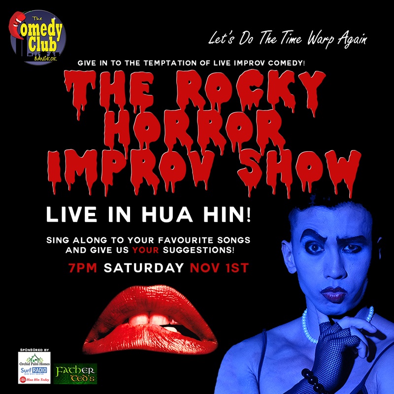 The Comedy Club Bangkok proudly presents for the first time in Hua Hin, the iconic ROCKY HORROR SHOW with your favourite hit songs but also improv comedy from YOUR suggestions.