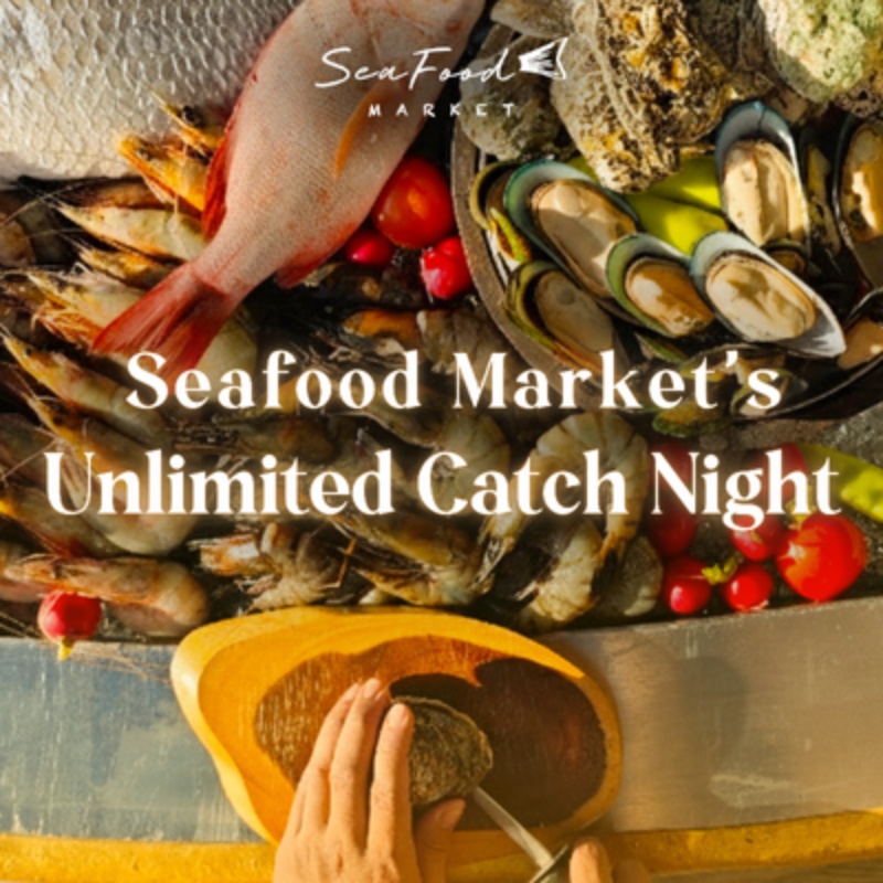 Experience the freshest Phuket seafood at Seafood Market's Unlimited Catch Night every Wednesday & Saturday, featuring a wide selection of the freshest local seafood, prepared live from our open kitchen and interactive stations.