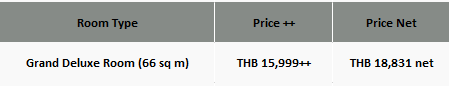 - All prices are quoted in Thai Baht, inclusive of 10% service charge and 7% government tax.