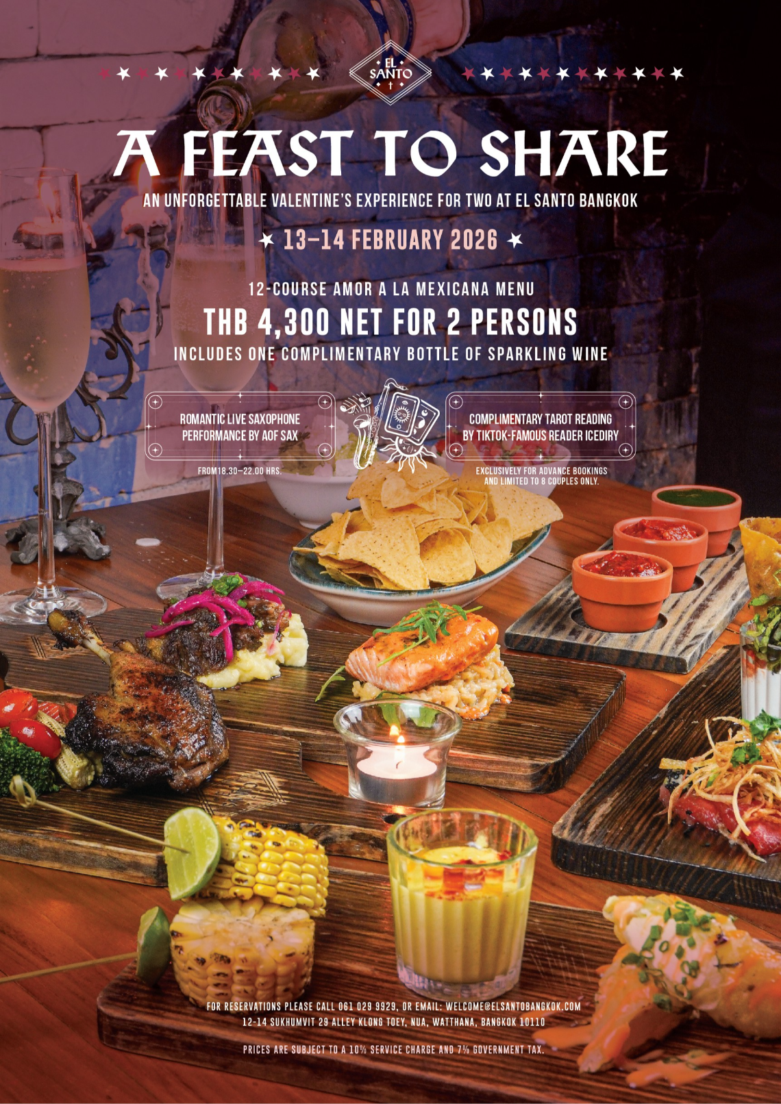 An unforgettable Valentine’s dinner experience for two at El Santo Bangkok.