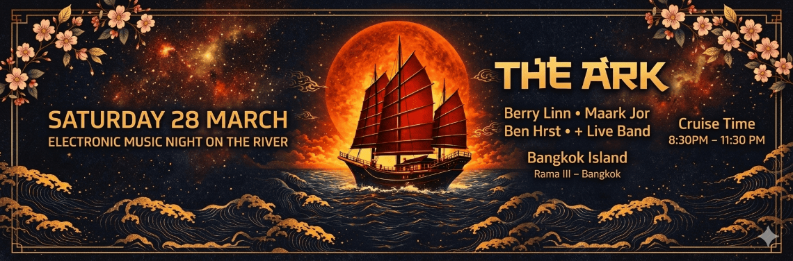 The Ark : Bangkok Island’s Electro Party is back for more good times on the river. Follow us on an epic party with some of the best DJs in town — Berry Linn, Maak Jor, and Ben Hrst — plus a special live band inside the boat to light the fuse before the decks turn into a moving dancefloor.