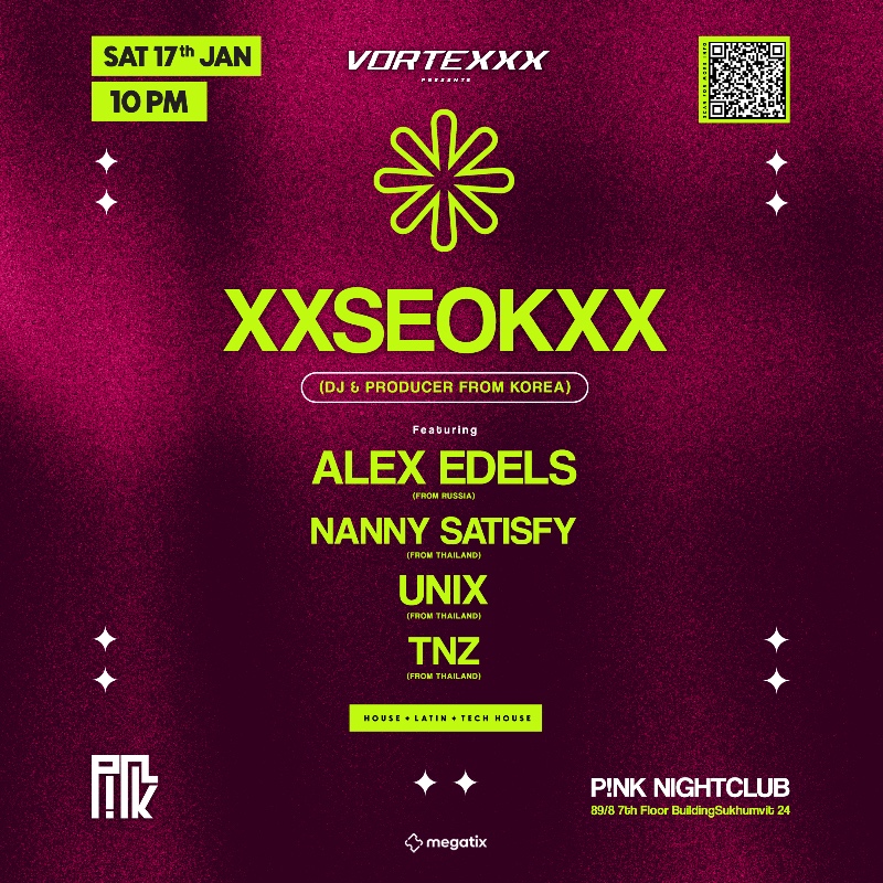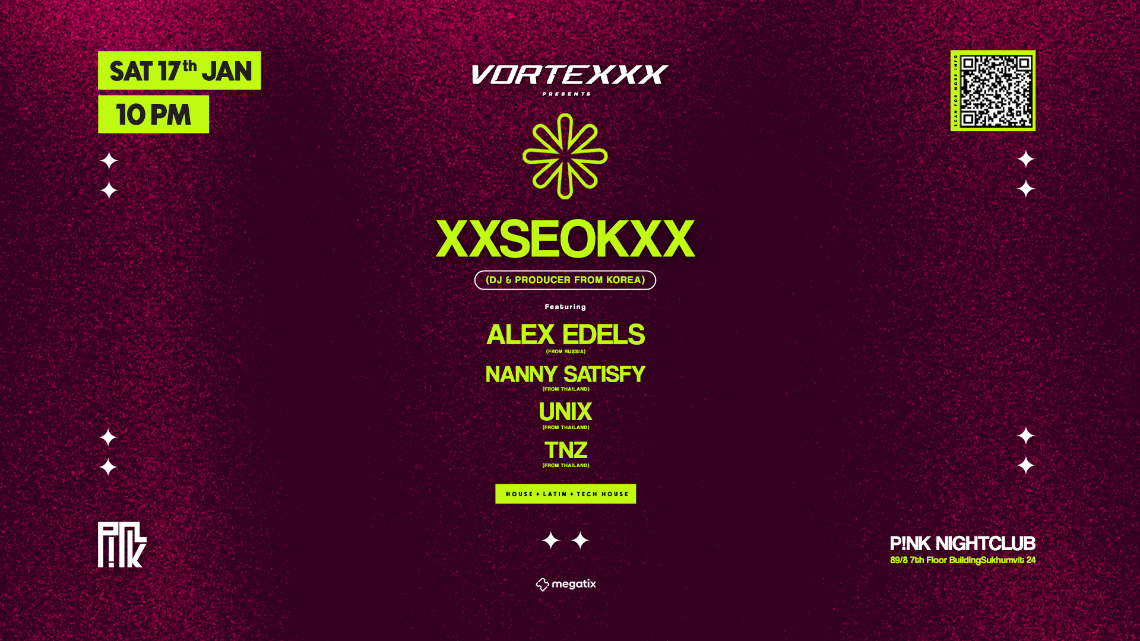 THE PARTY OF UNTAMED ENERGY AND LIMITLESS VIBES. FROM WAVY GROOVES TO EXPLOSIVE DROPS, WE DELIVER THE FINEST HOUSE MUSIC AND TECH HOUSE BLENDED WITH AFRO HOUSE, LATIN TECH, WITH POP CULTURE INFLUENCES. A MIX OF CUTTING-EDGE SOUNDS, SURPRISE PERFORMANCES, AND A CROWD THAT KNOWS HOW TO KEEP THE FIRE BURNING. WITH TOP DJS FROM THAILAND AND AROUND THE GLOBE, TAKING OVER THE DECKS, EVERY LINEUP IS FRESH, POWERFUL, AND UNFORGETTABLE. THIS IS WHERE MUSIC, CHAOS, AND FREEDOM COLLIDE. STEP IN, LET GO, AND LOSE YOURSELF IN THE CRAZY. VORTEXXX – THE ULTIMATE PARTY YOU’VE BEEN WAITING FOR. __________________________________________• XXSEOKXX (DJ & PRODUCER FROM KOREA) •