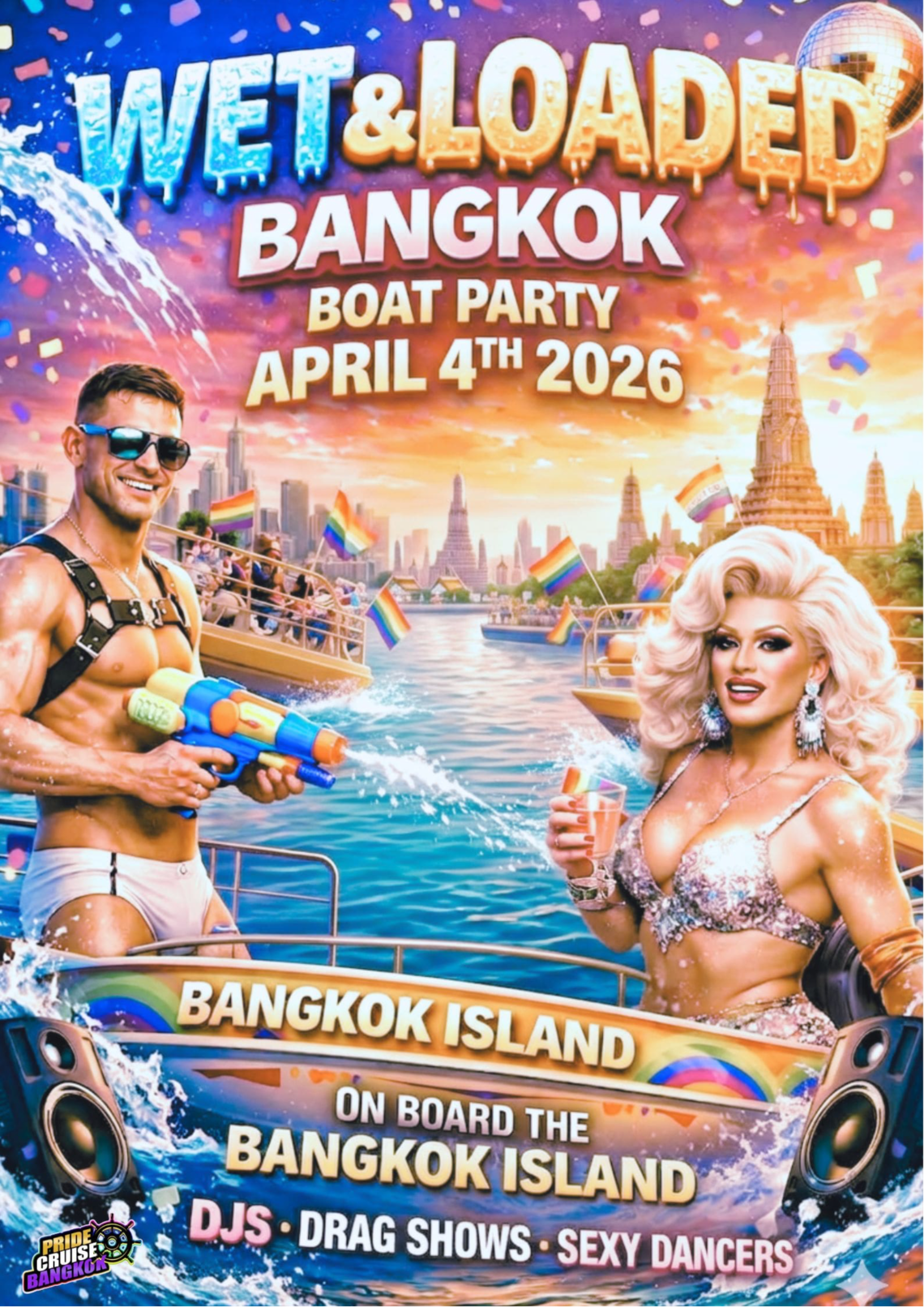 This is loud, visible, wet Pride — only on Bangkok Island. 💦🌈🔥