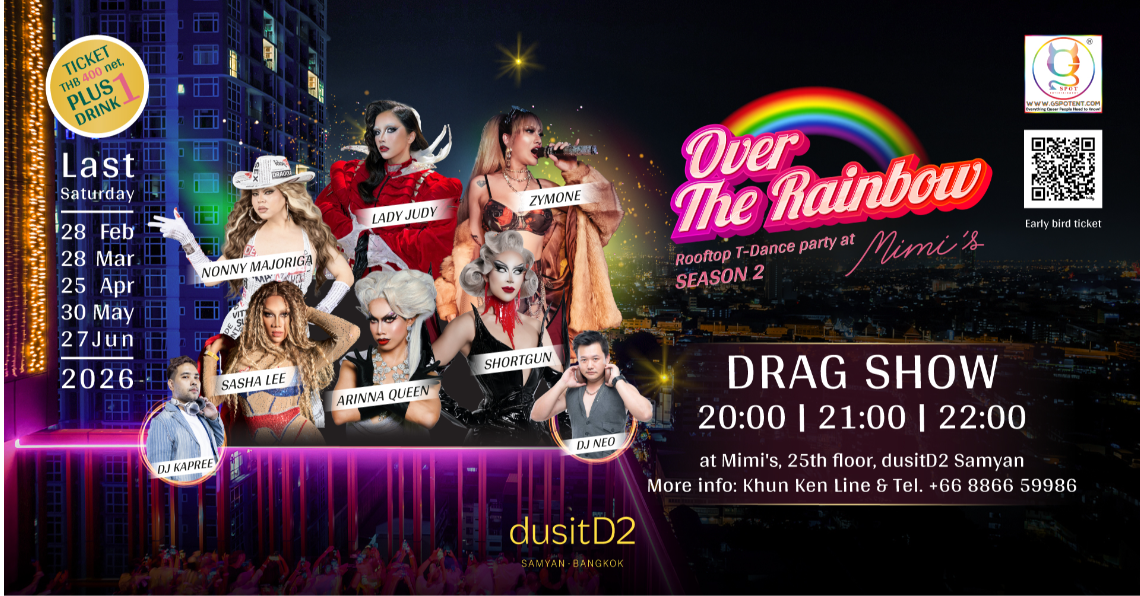 Get ready to elevate your Saturdays! Over the Rainbow Rooftop T-Dance Party Season 2 returns to Mimi’s Bangkok at dusitD2 Samyan. Join us every last Saturday of the month throughout 2026 for the ultimate sunset celebration.