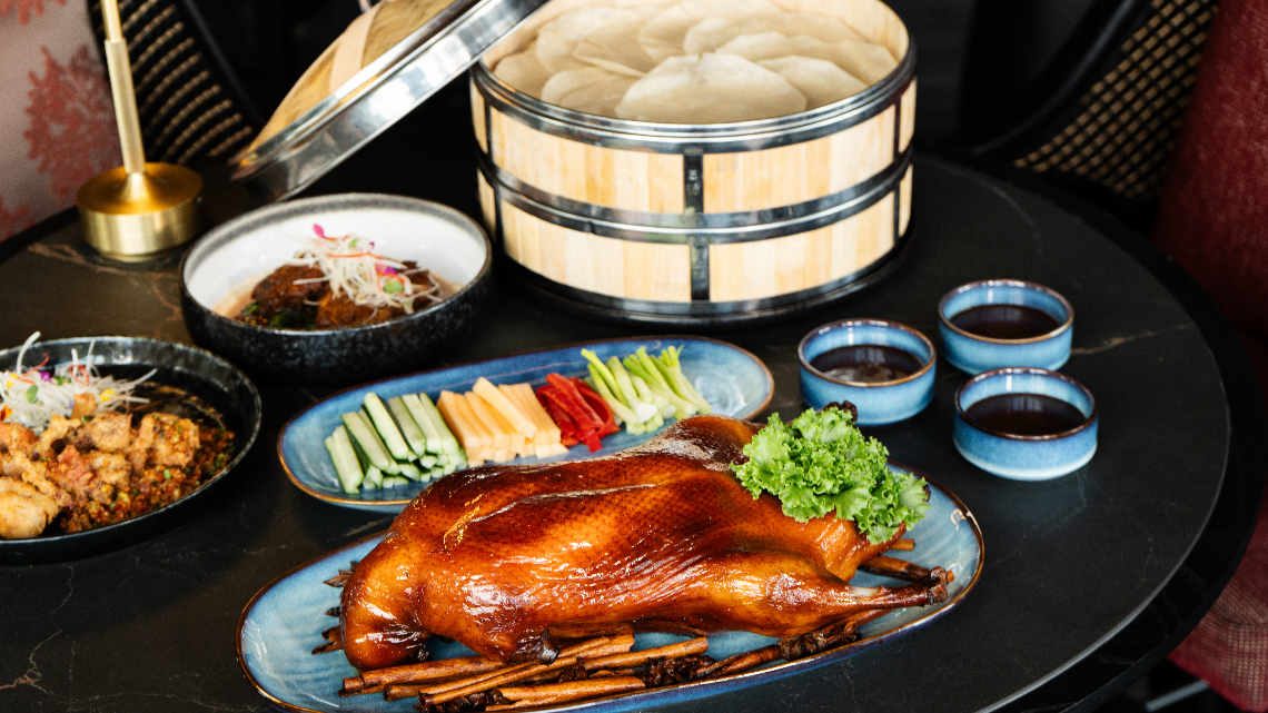 🥢 ลิ้มรสเป็ดปักกิ่งรมควันด้วยไม้สูตรฮ่องกง เสิร์ฟพร้อมแป้งบาง ผักสด และซอสฮอยซิน