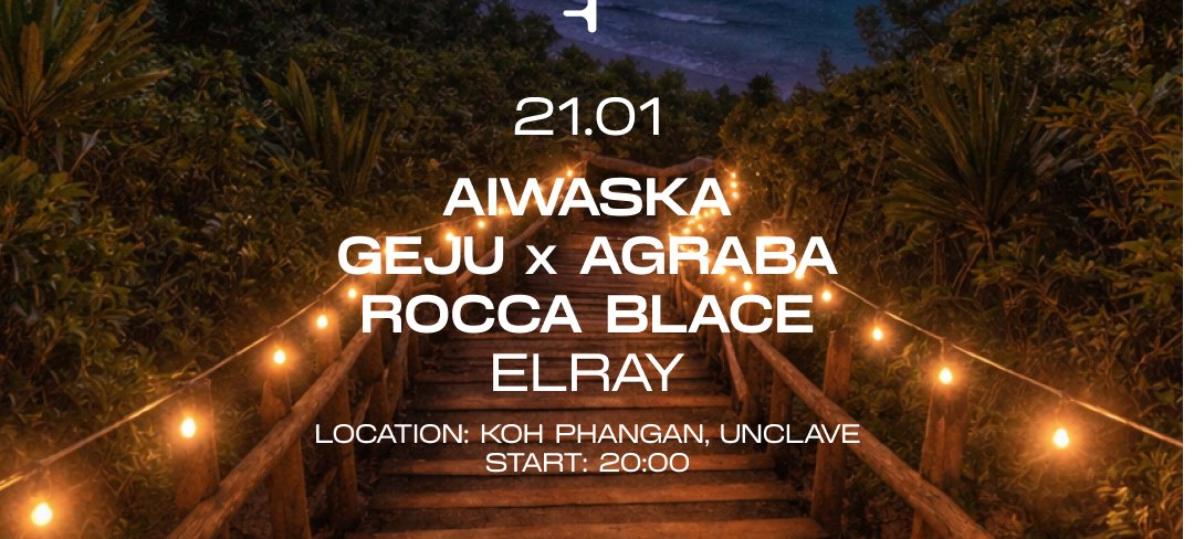 GEJU duo returns to the island with an exclusive b2b program with AGRABA and also ALEXEY UNION with his first and only show on Koh Phangan.