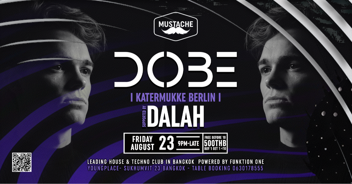So come down to Mustache Bangkok for a night of awesome music and great energy. With DOBE and DALAH spinning, it’s sure to be an epic evening. Don’t miss out!