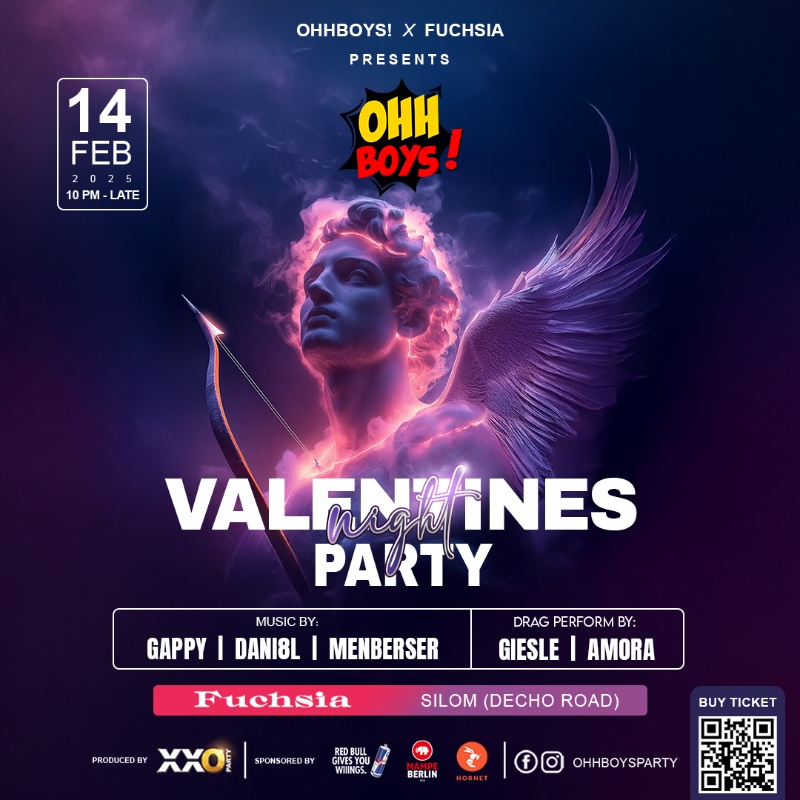 This Valentine's Day ❤️, we're turning up the heat at 𝗙𝘂𝗰𝗵𝘀𝗶𝗮, a brand-new club in Silom boasting an incredible sound system from 𝗩𝗢𝗜𝗗. Our inclusive gay party promises an evening of booming beats, amazing music, and a safe space to be unapologetically you. Grab your friends, dress in your boldest looks, and join us for a night where every beat celebrates love in all its forms. Come ready to dance, laugh, and make unforgettable memories!